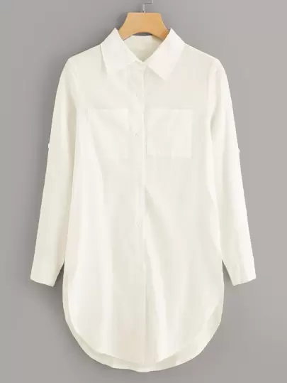Patch Pocket Curved Hem Longline Shirt - Beige - View 2