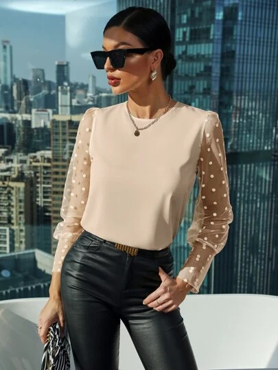 6. SHEIN Essnce Dobby Mesh Panel Blouse