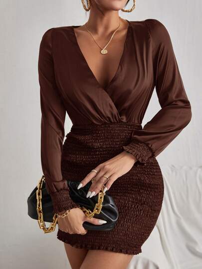 6. SHEIN SXY Surplice Neck Shirred Frill Trim Bodycon Dress