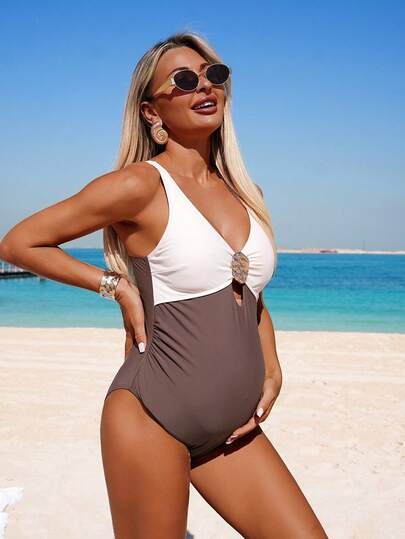 SHEIN Maternity Colorblock Casual One Piece Swimsuit - Multicolor - View 1