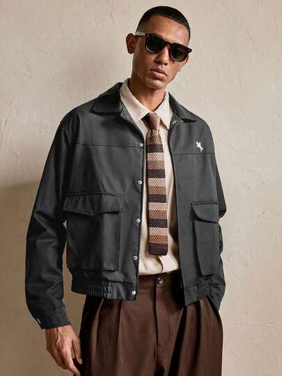 SWAVVY Men's Woven Casual Loose Fit Patchwork Open Front Jacket Cropped Men Jacket - Dark Grey - View 1