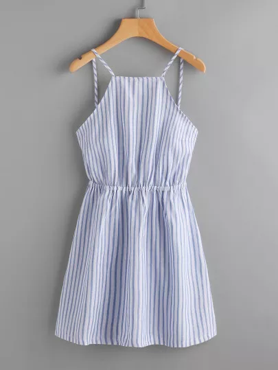 Striped Cut Out Bow Tie Open Back Cami Dress - Blue and White - View 1