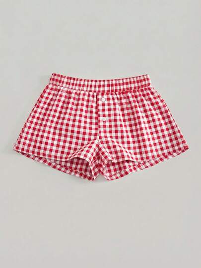 Tween Girl Woven Red & White Plaid Button Decor Loose Casual Shorts, Back To School Season, Leisure Sports, Mommy And Me Matching Outfits