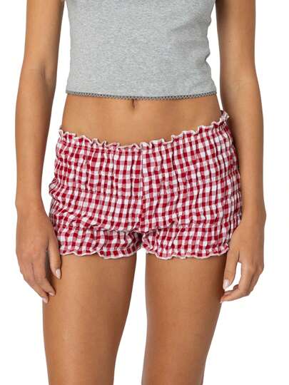 Women Plaid Shorts, Elastic Waist Casual Shorts Summer Streetwear For Daily Date