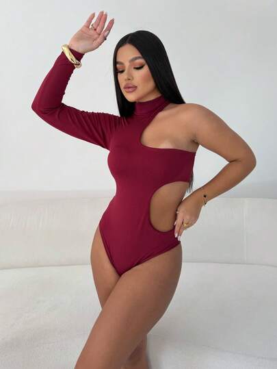 Women's Leotard Bodysuit High Neck with Cutouts One Long Sleeve Versatile Sensual Casual Fashion Blogger Gringa