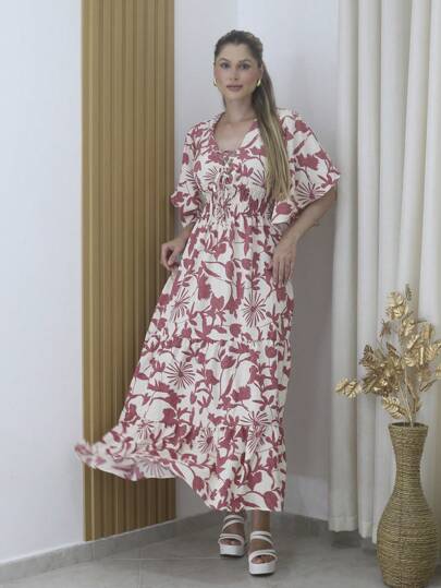 Women's long dress with batwing sleeves and printed padding - Maxma 8428