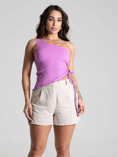 Women's Mula Manca Blouse One Shoulder Adjustable Gathering On The Side Various Colors Christmas Get-Together Beach Summer Cropped Top
