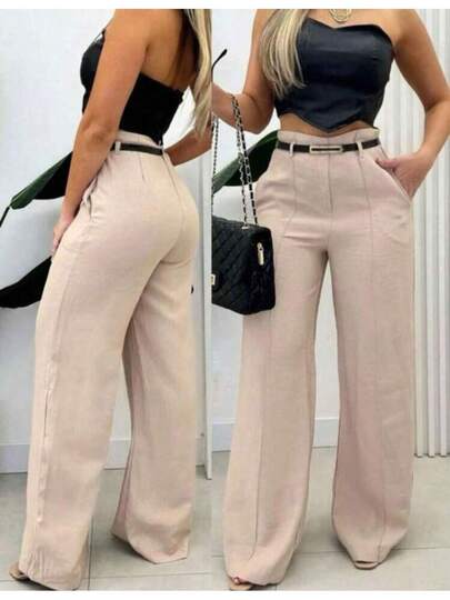 Women's Tailored Trousers With Buttons 2025 TROUSERS WITH A THIN BELT