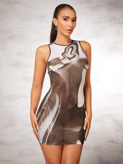 SHEIN BAE Women's Tie-dye Print Bodycon Dress