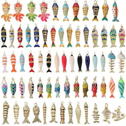 1pc Fashionable Copper Fish Shaped Pendant, Versatile For DIY Bracelet, Necklace, Earrings, Phone Chain, Backpack Decor