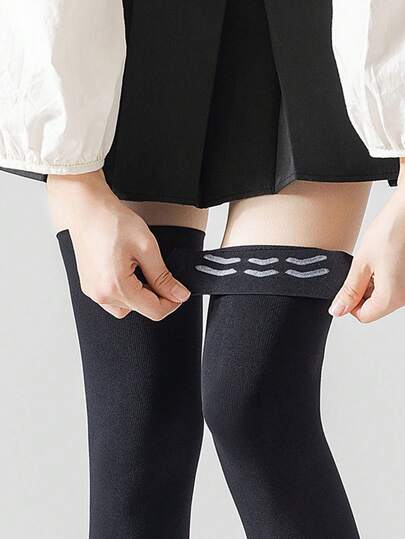 1 Pair Unisex Graduated Compression Thigh High Socks, Silicone Non-Slip Over-The-Knee Socks, Suitable For Various Sports, Can Effectively Improve Leg Adiposity (Please Purchase According To Recommended Size Based On Body Weight), Cozy - Black - View 1
